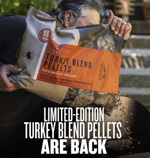 Don’t have a Traeger just yet? We got you covered with our a-la-carte Orange Brine and Turkey Rub Kit (Turkey Blend Pellets have the kit included).